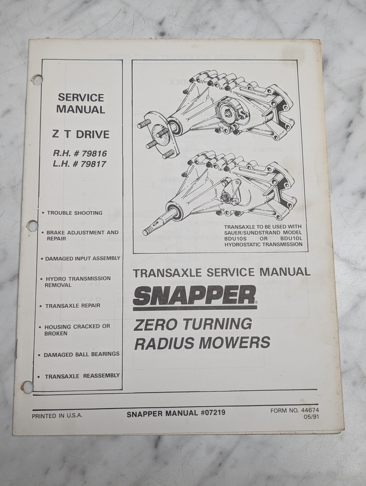 Snapper Z T Drive 79816 79817 Transaxle Manual Zero Turning Radius Mowers