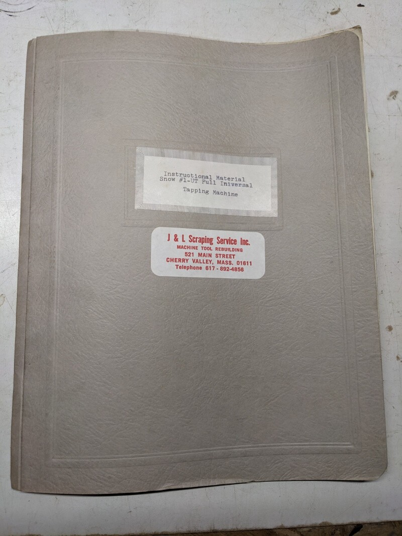 Snow Tapping Machine #1-Ut Operator Instruction Manual Parts List Sho Book