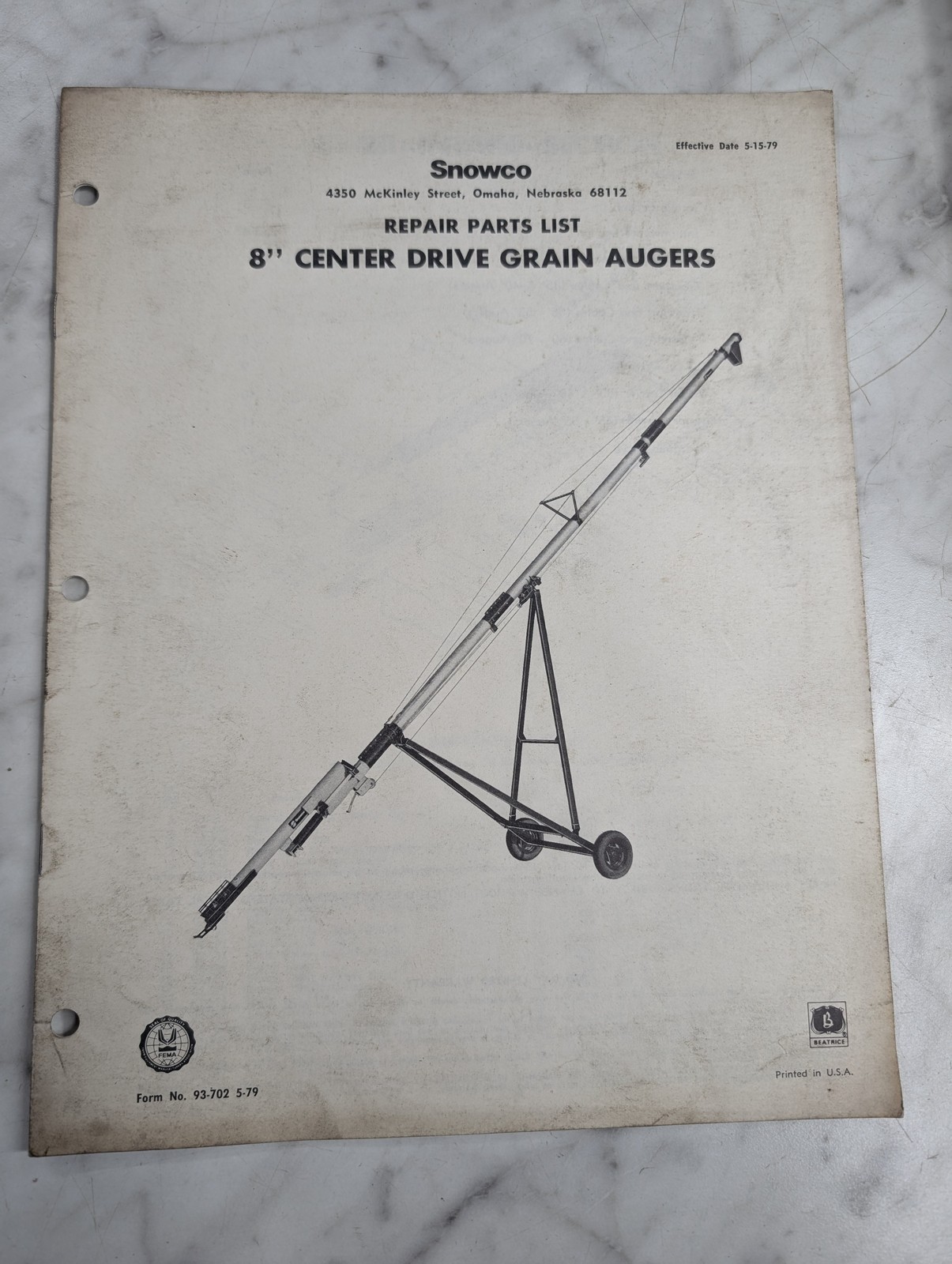 Snowco 8” Center Drive Grain Auger Repair Parts List Book Manual Catalog 1979