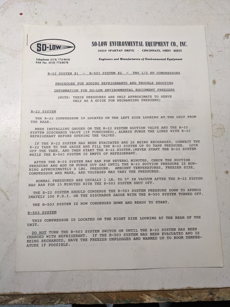So-Low Equipment Procedure For Adding Refrigerants To #1 #2 Freezer