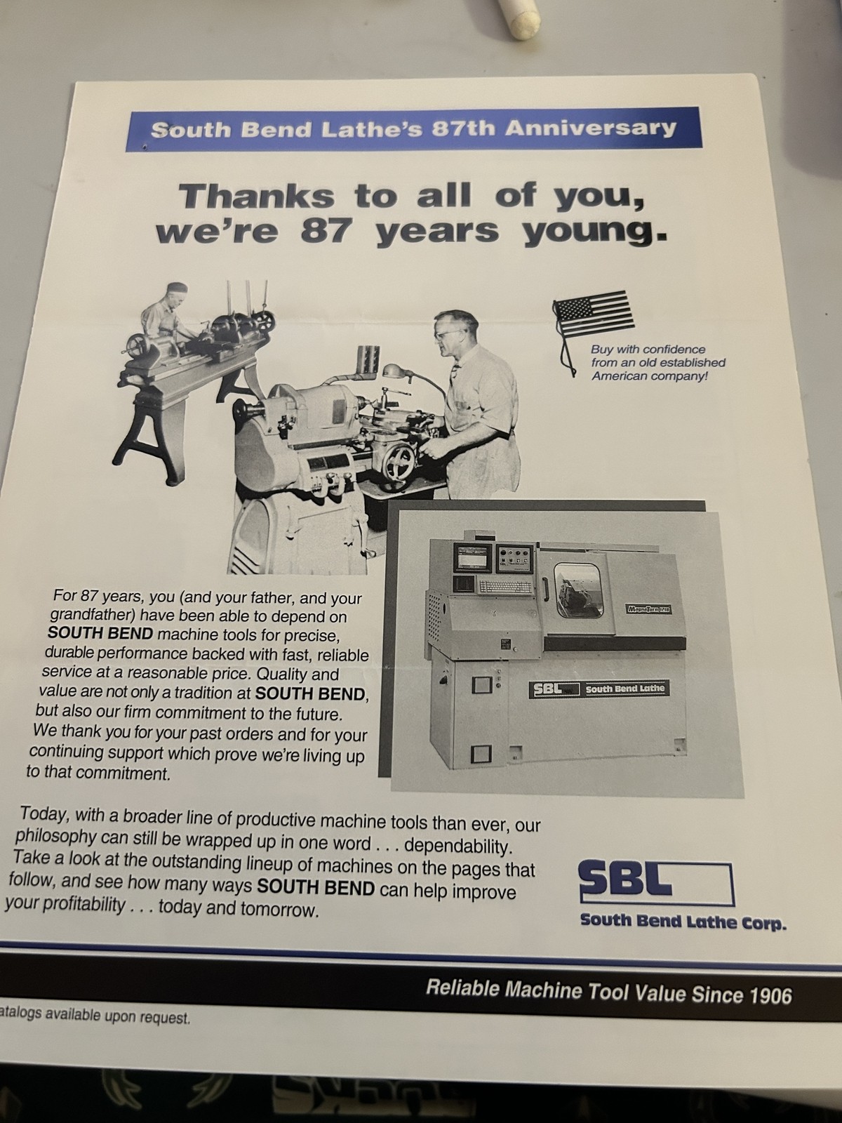 South Bend Lathe Corp 87Th Anniversery Sales Brochure And Product Description
