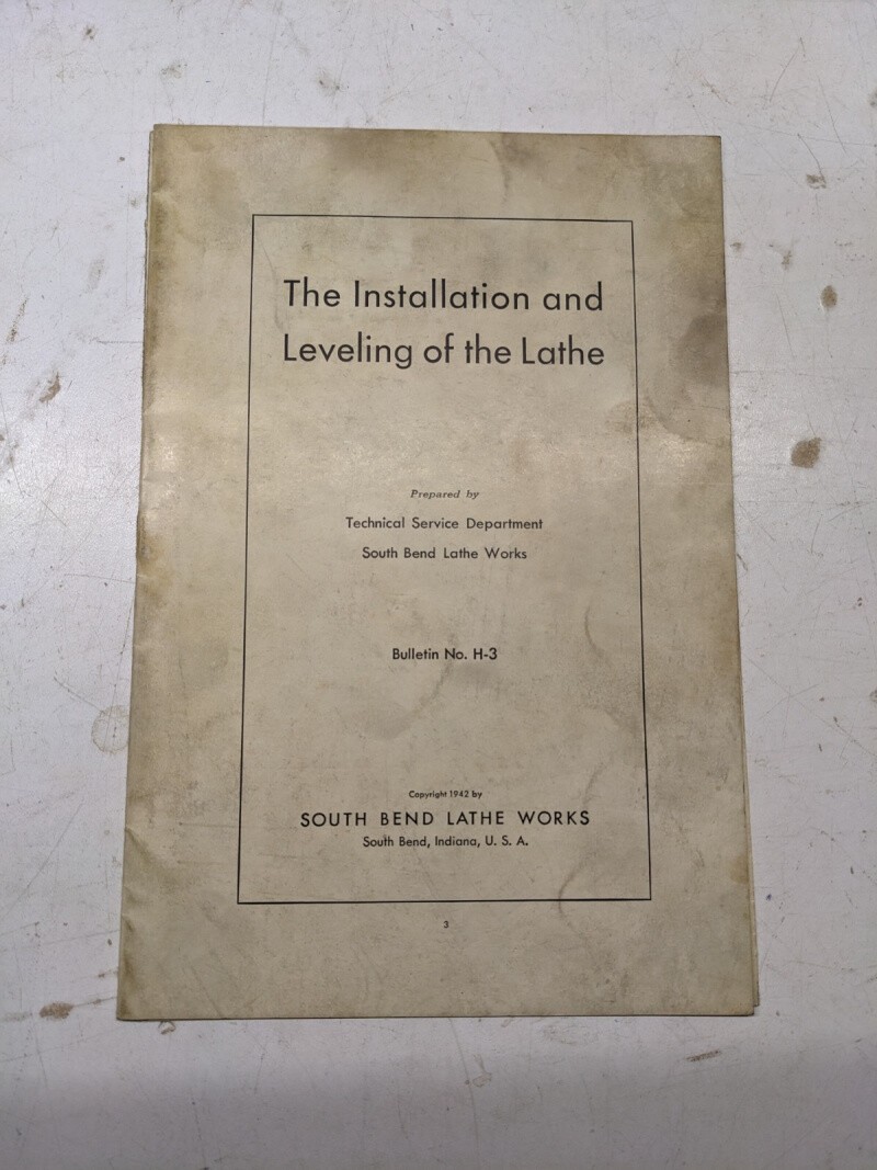 South Bend Lathe Installation Leveling Instruction Manual H-3 1942 Machine Tool