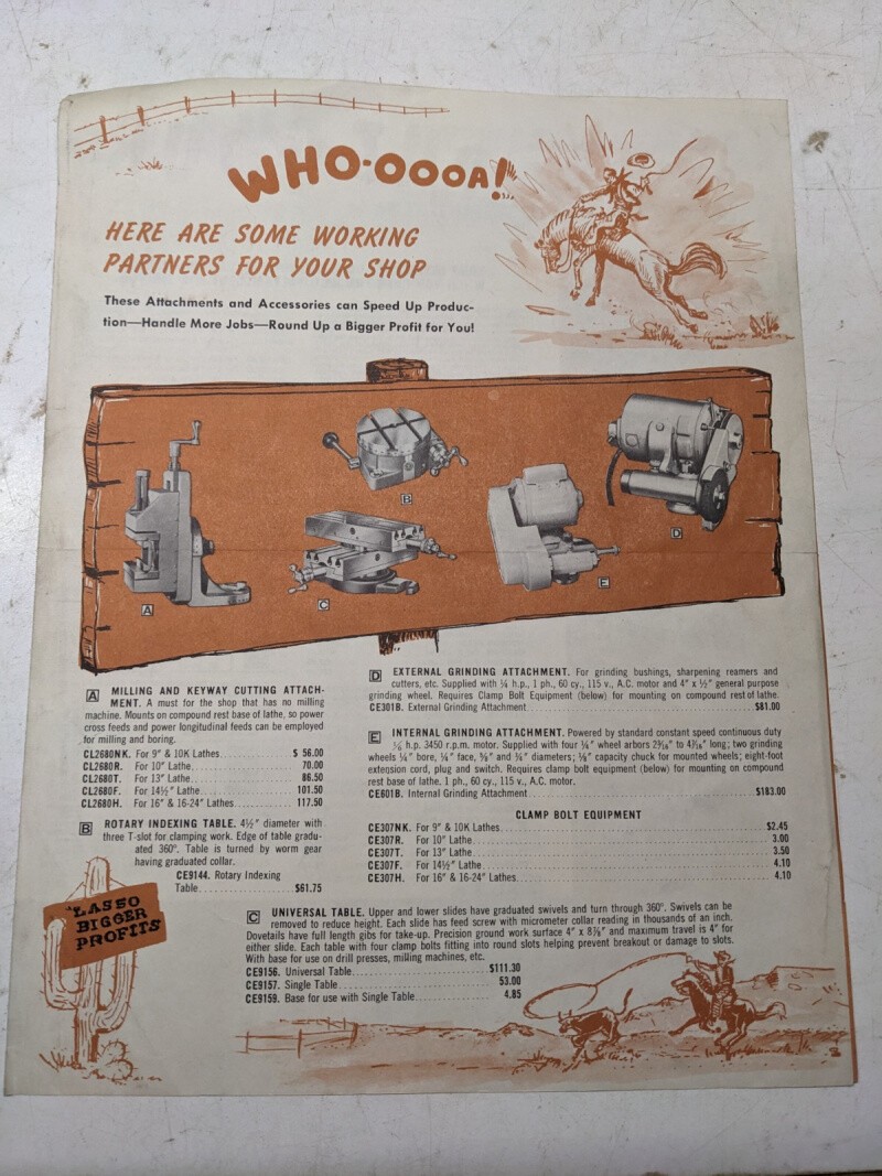 South Bend Lathe Sales Brochure Catalog Product Price List 1961 Milling Grinding