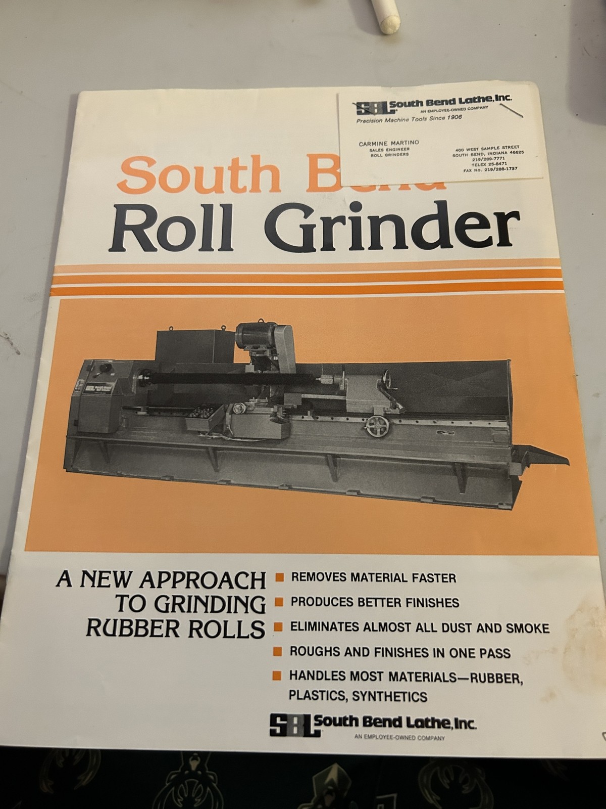 South Bend Roll Grinder Sales Brochure Series 16 Series 15 Platen Sleeve Grinder