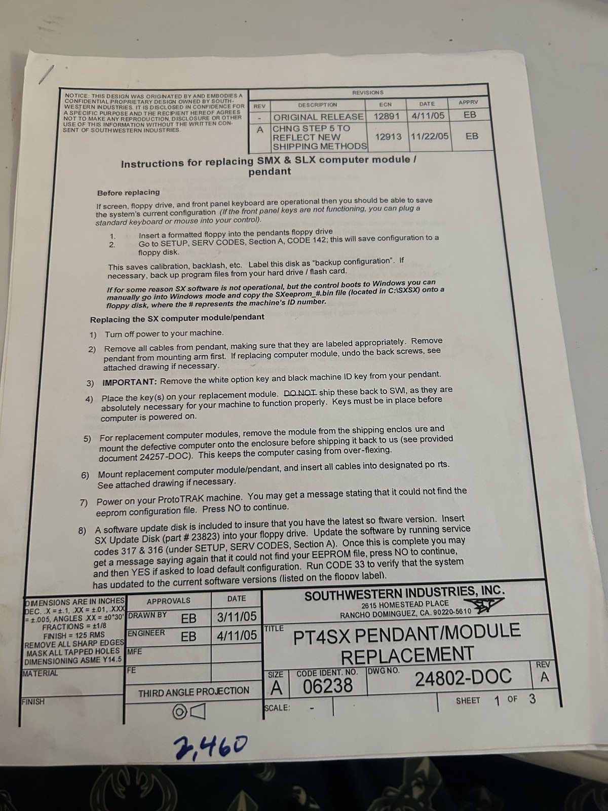 Southwestern Industries Pt4Sx Pendent Module Replacement Smx And Slx Computer