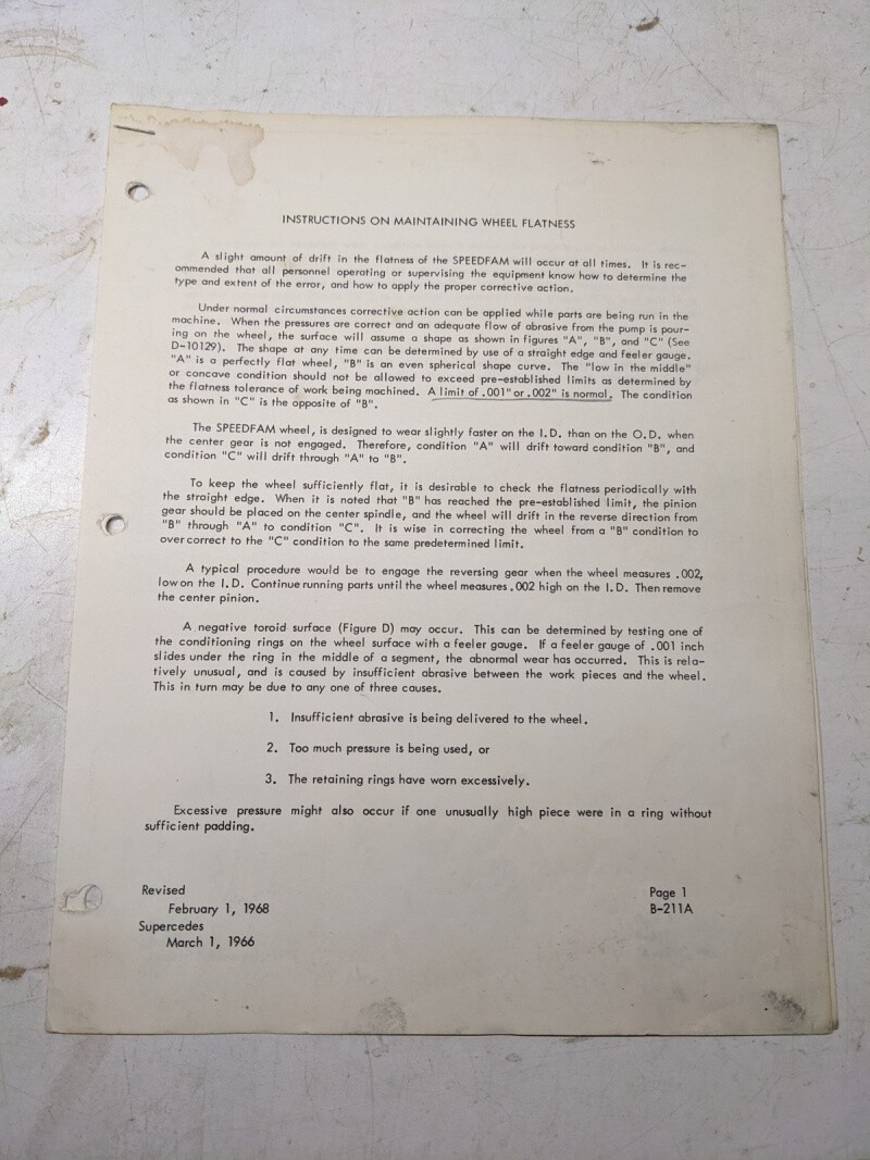 Speedfam Instructions Maintaining Wheel Flatness Abrasive Grinidng Machine 1968