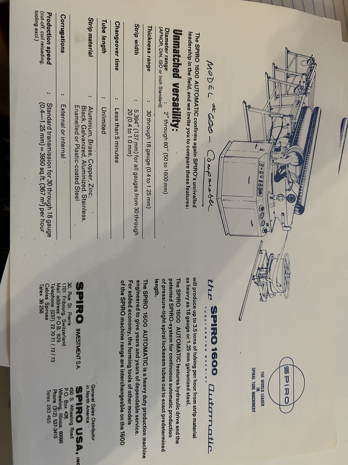 Spiro 1600 Automatic Hydraulic Drive Tube Spiral Tube Machinery