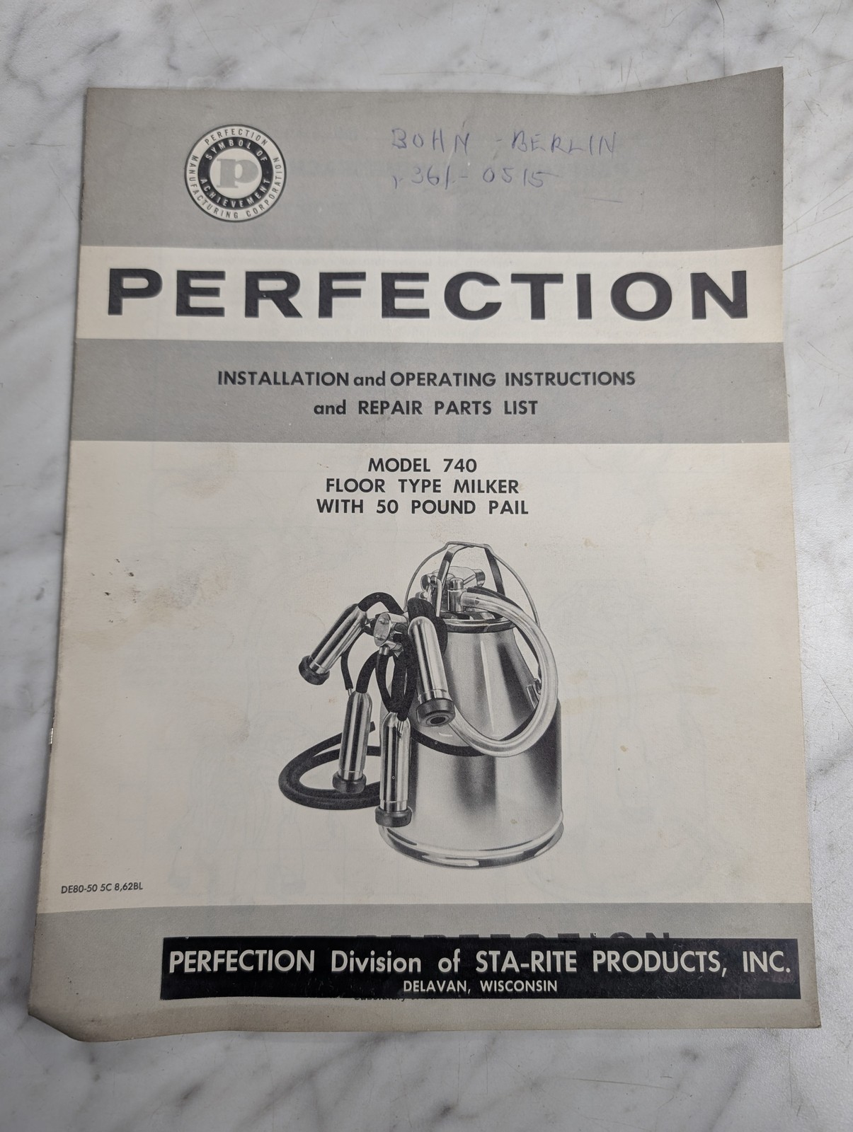 Sta-Rite Perfection Installation Operator Manual Parts List 740 Milker