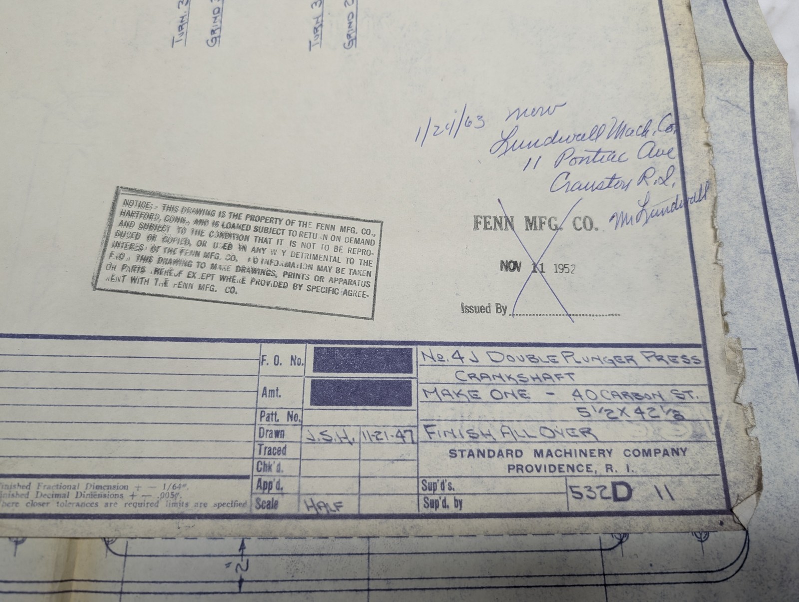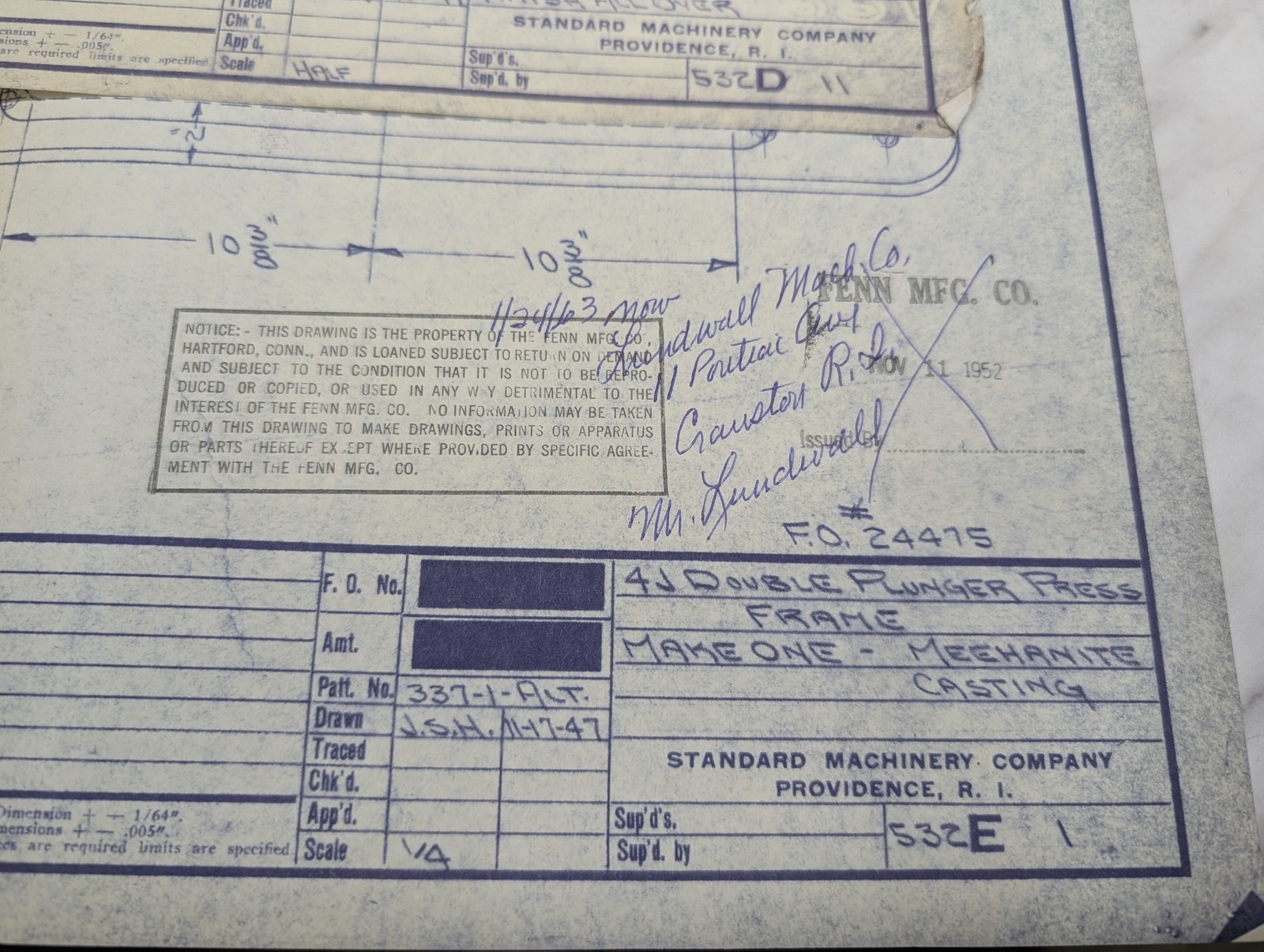 Standard Machinery Tool 4J Plunger Press Drawing Diagrams Blue Prints