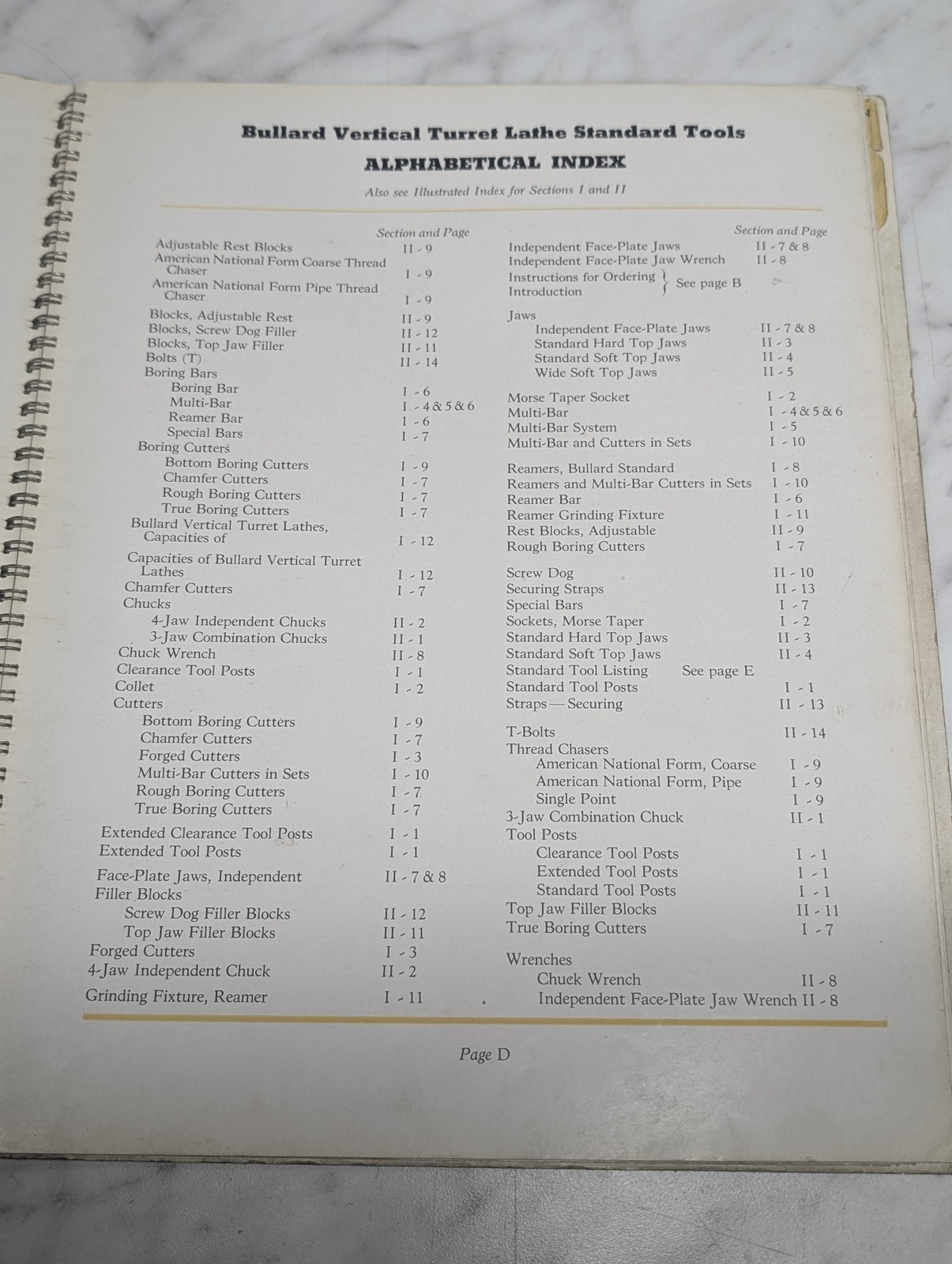 Standard Tools Catalog For Vertical Turret Lathes Bullard Company Manual