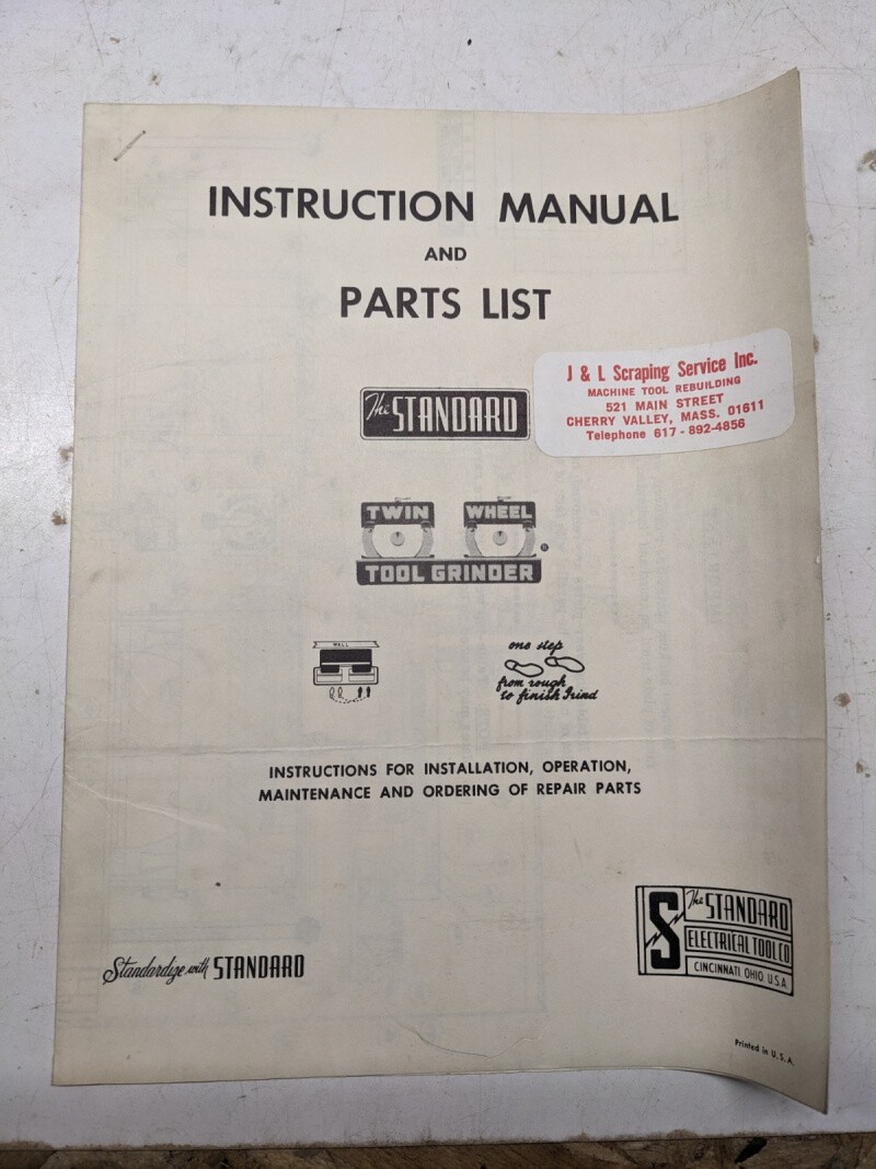 Standard Twin Wheel Tool Grinder Instruction Manual Parts List Book 14Td