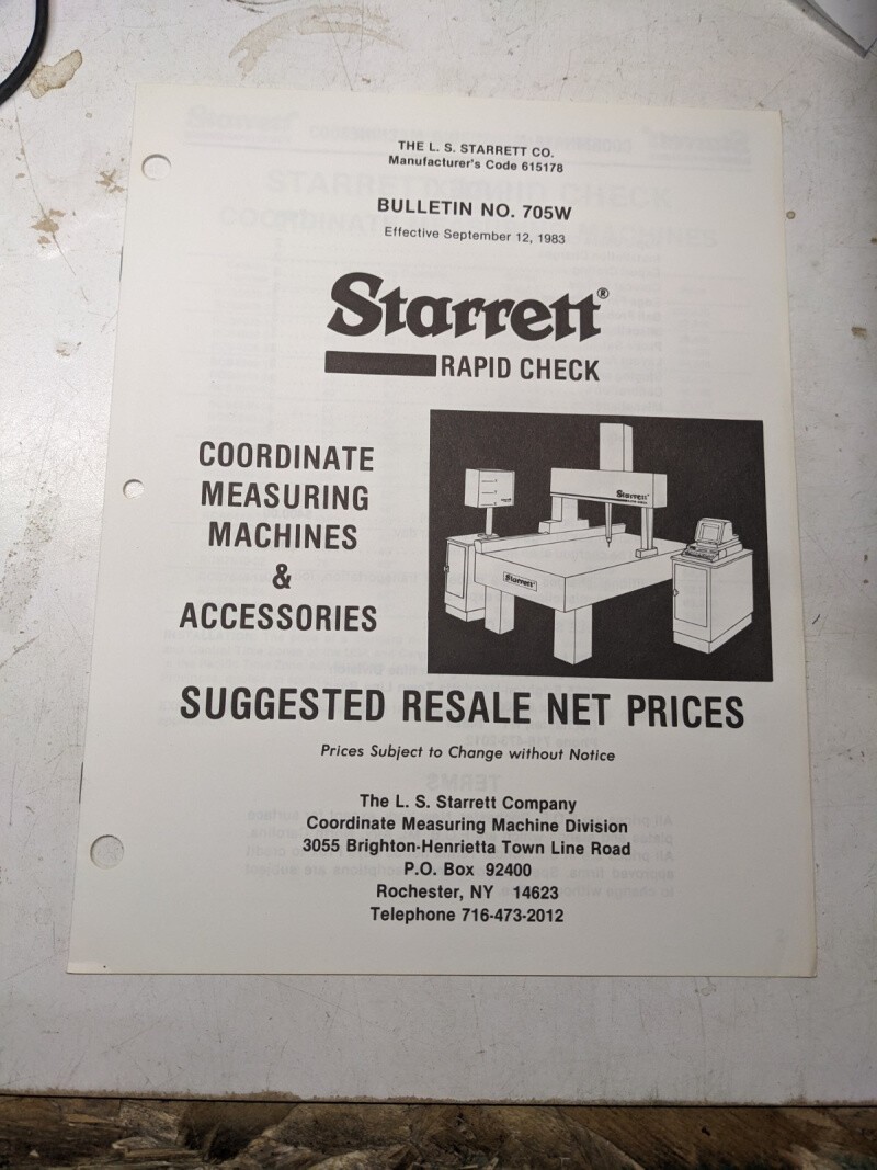 Starrett Rapid Check Coordinate Measuring Machine Sales Brochure Price List 1983