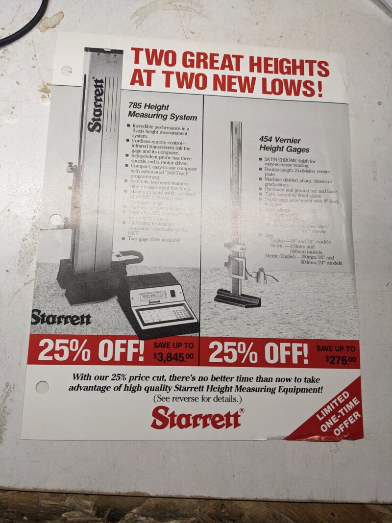Starrett Sales Brochure Height Measuring System Gages 785 454 Price List