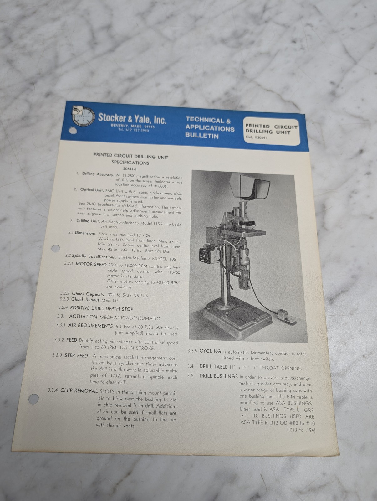 Stocker Yale 20641 Printed Circuit Drilling Unit Technical Applications Brochure
