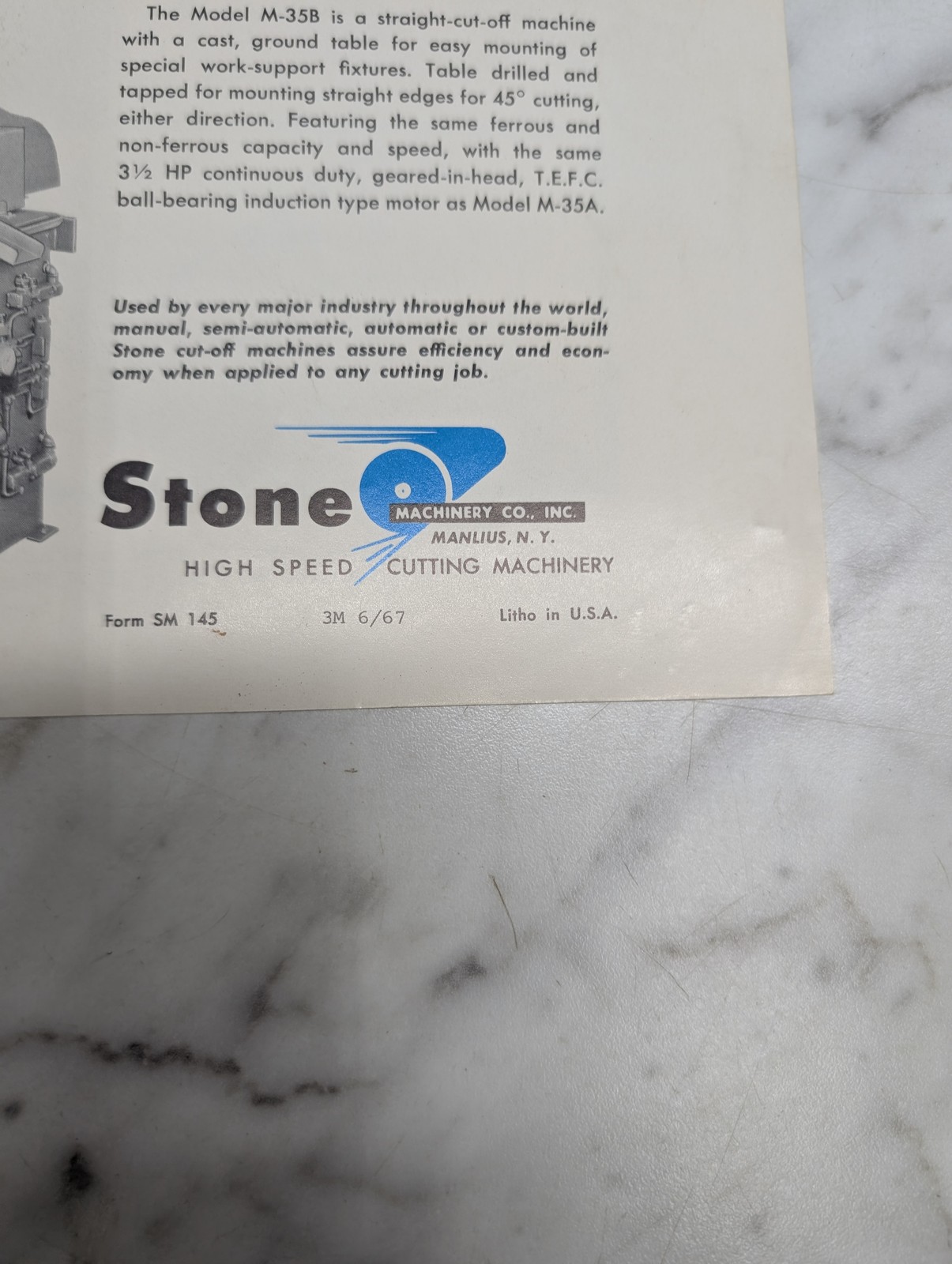 Stone Model M 35 Series 14 High Speed Metal Cut Off Machines 35A Sales Brochure