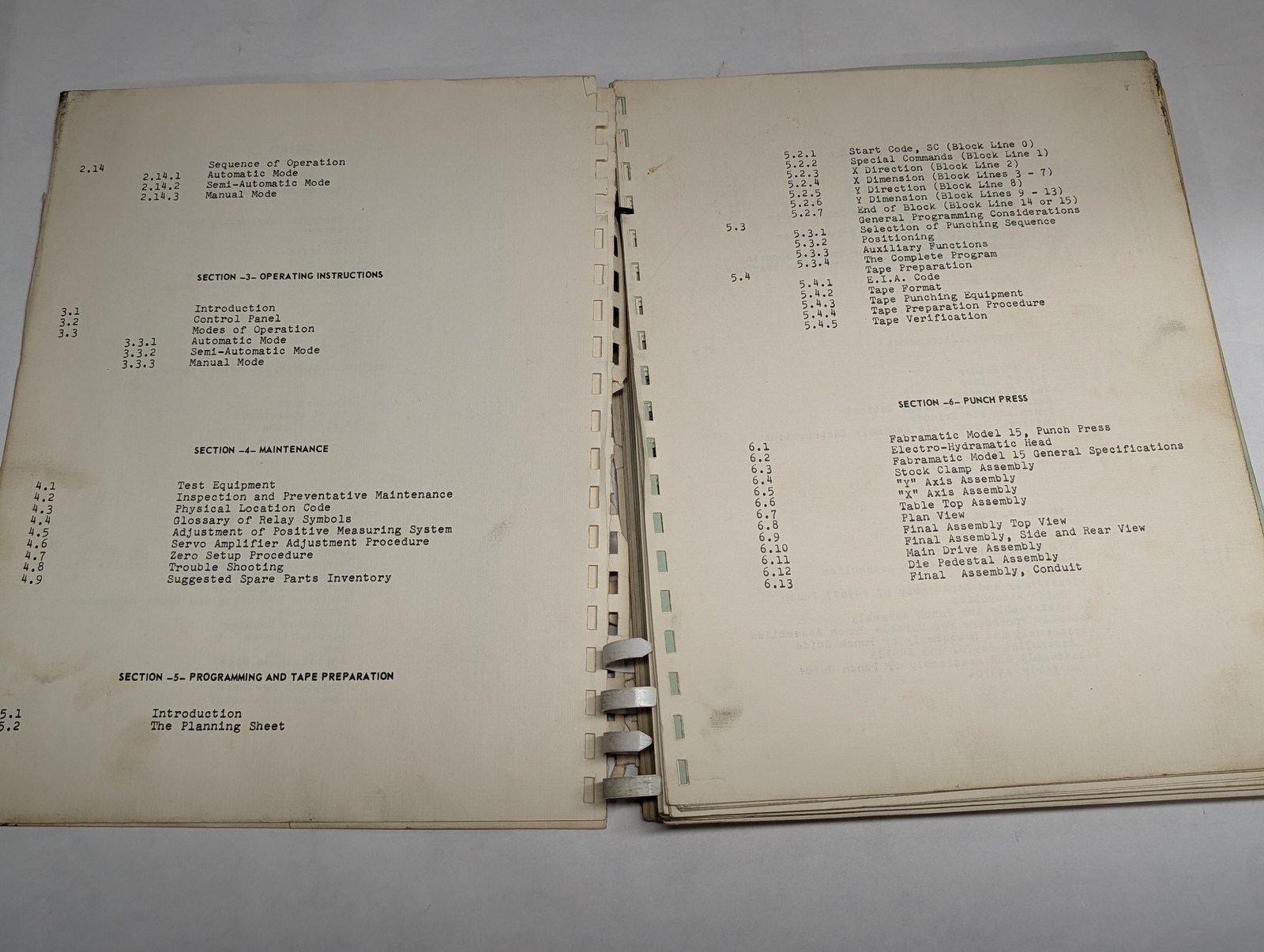 Strippit Fabramatic 15 N/C Fabricator Operator Service Manual Parts List