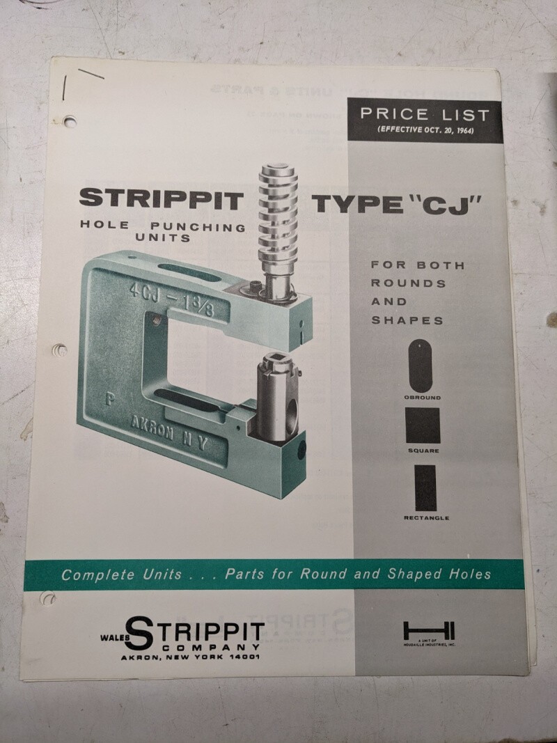Strippit Type Sales Price List Hole Punching Cj 1964 Wales Company