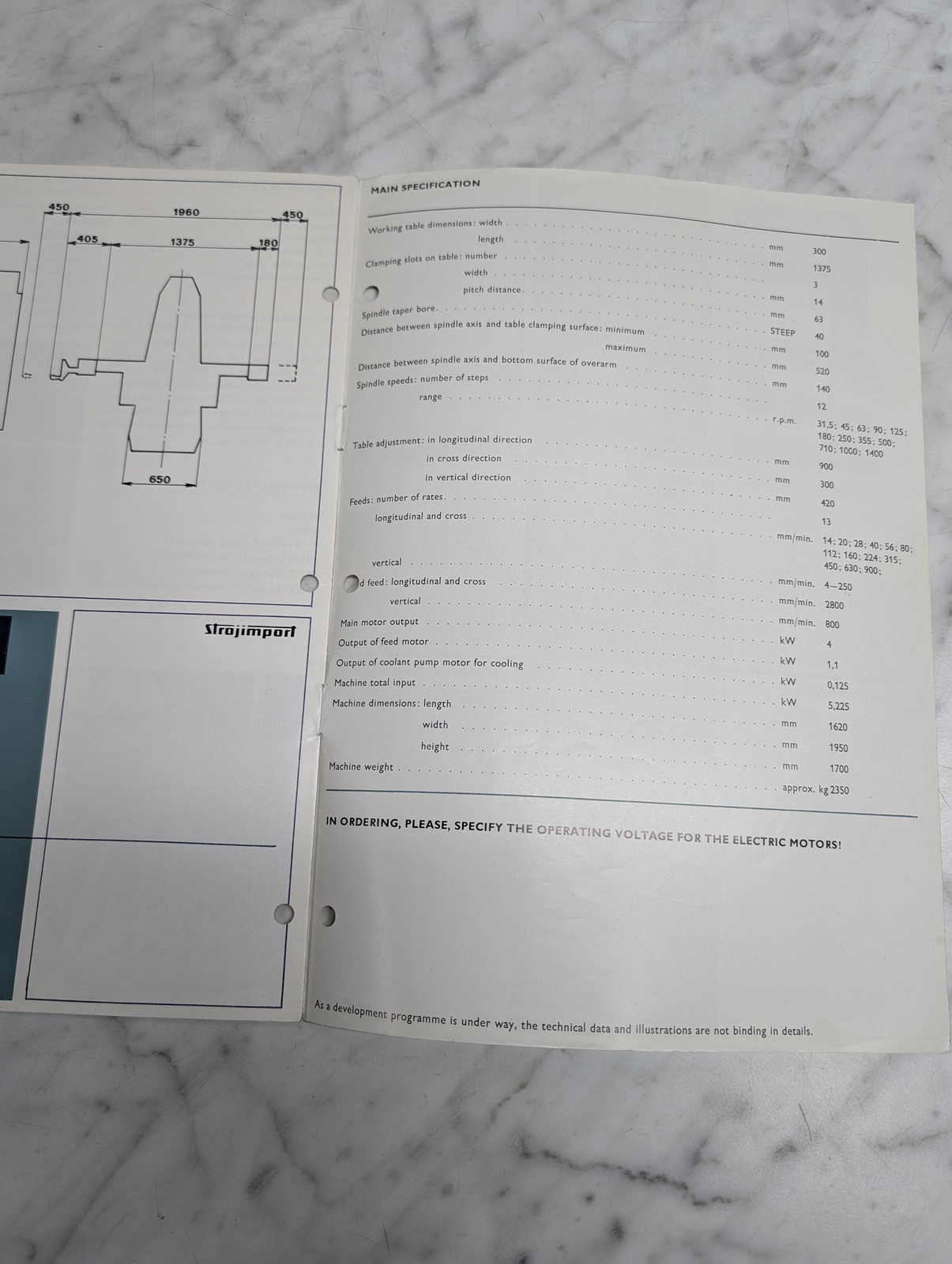 Strojimport Fh 20 Knee-Type Horizontal Milling Machine Fh20 Tos Sales Brochure
