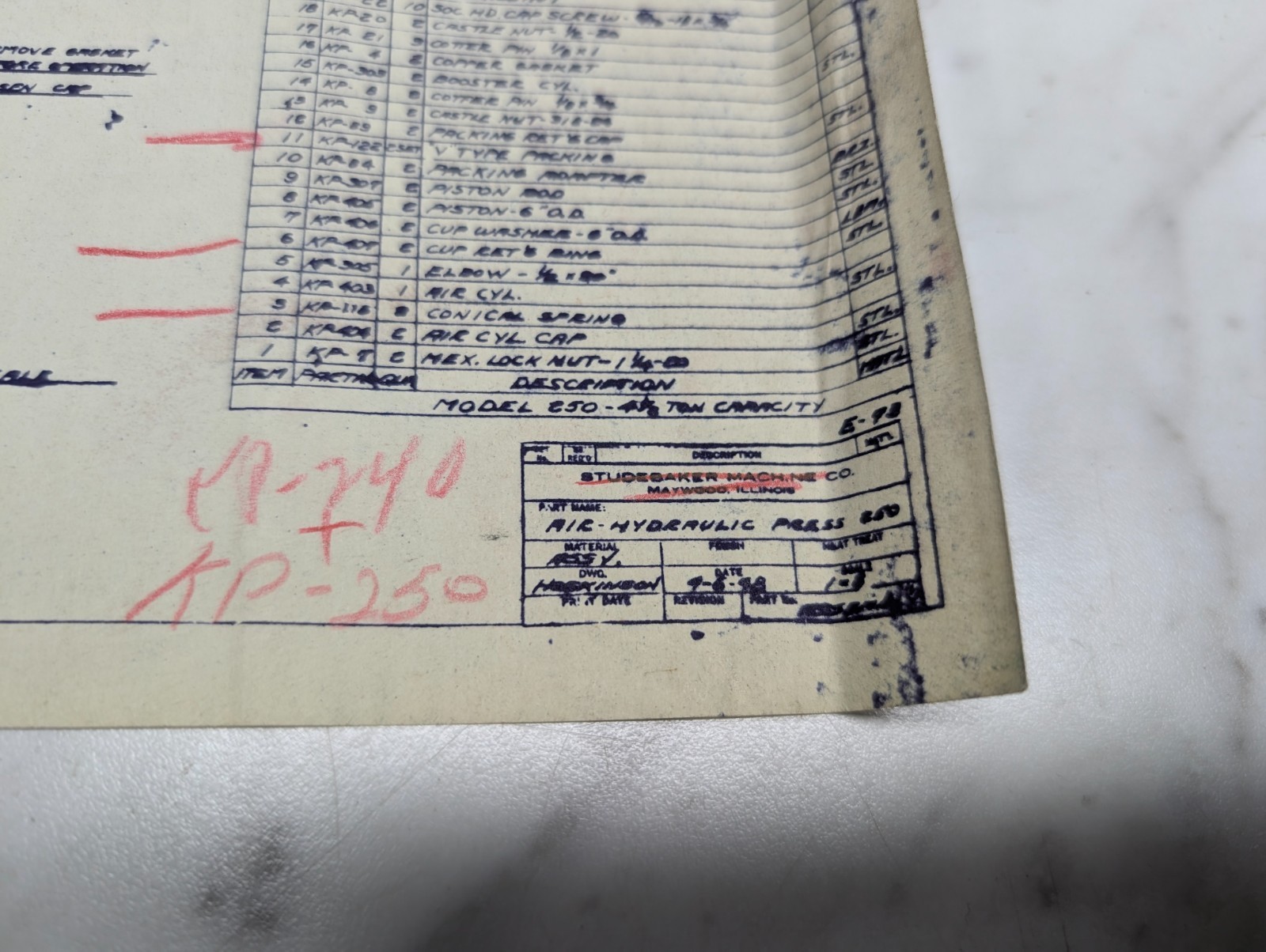 Studebaker Machine Company Air Hydraulic Press Drawing Diagram Print Information