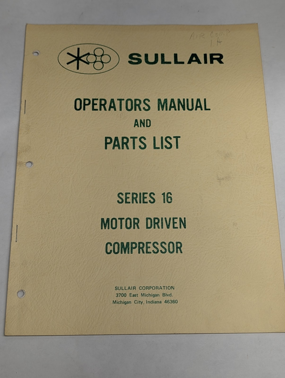 Sullair Operators Manual Parts List Catalog Series 16 Air Compressors