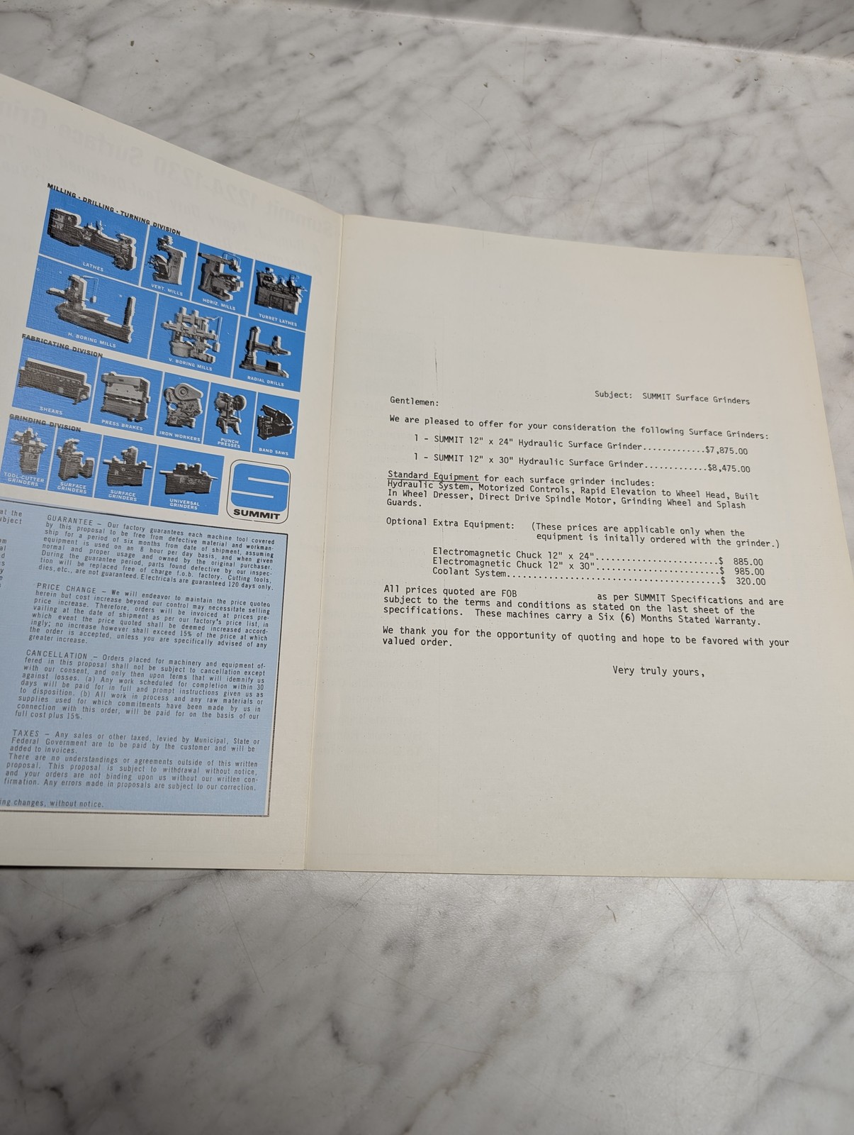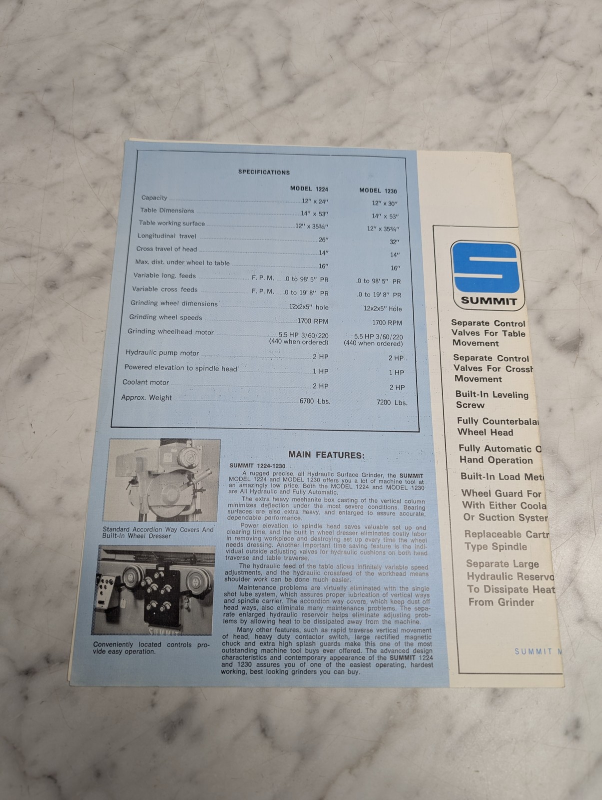 Summit 1224-1230 Surface Grinder All Hydraulic Fully Automatic Sales Brochure