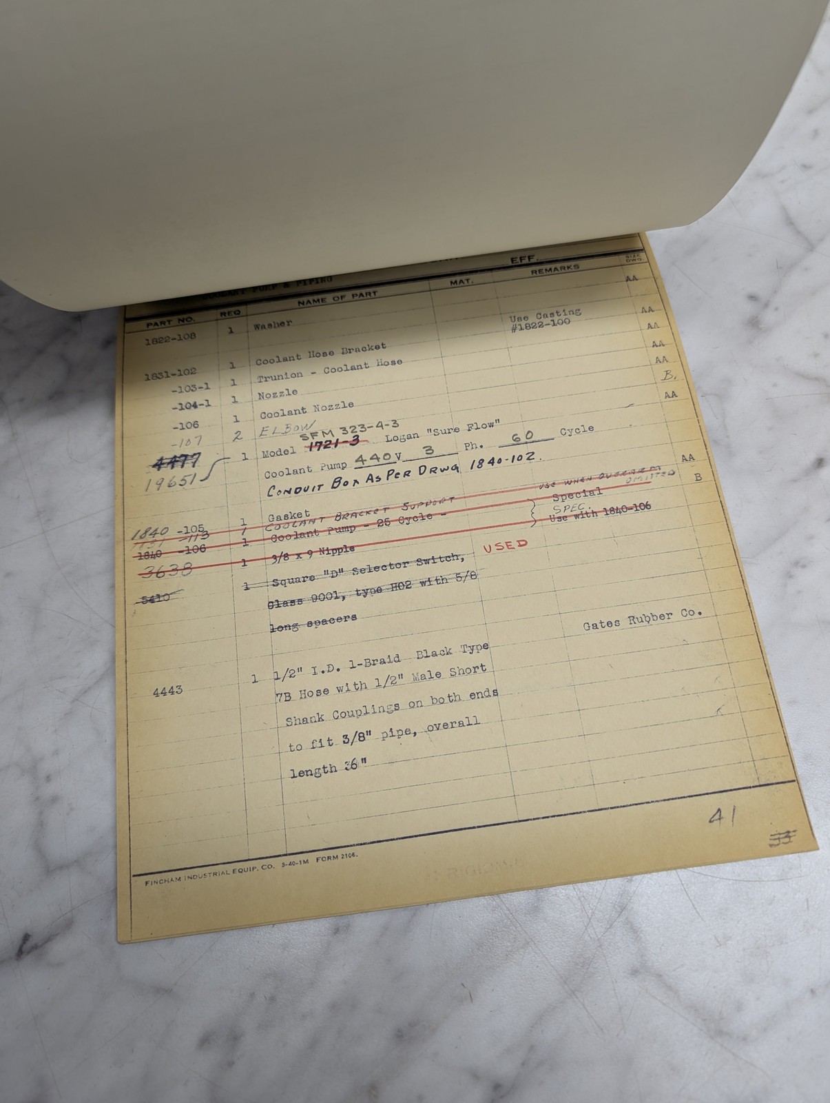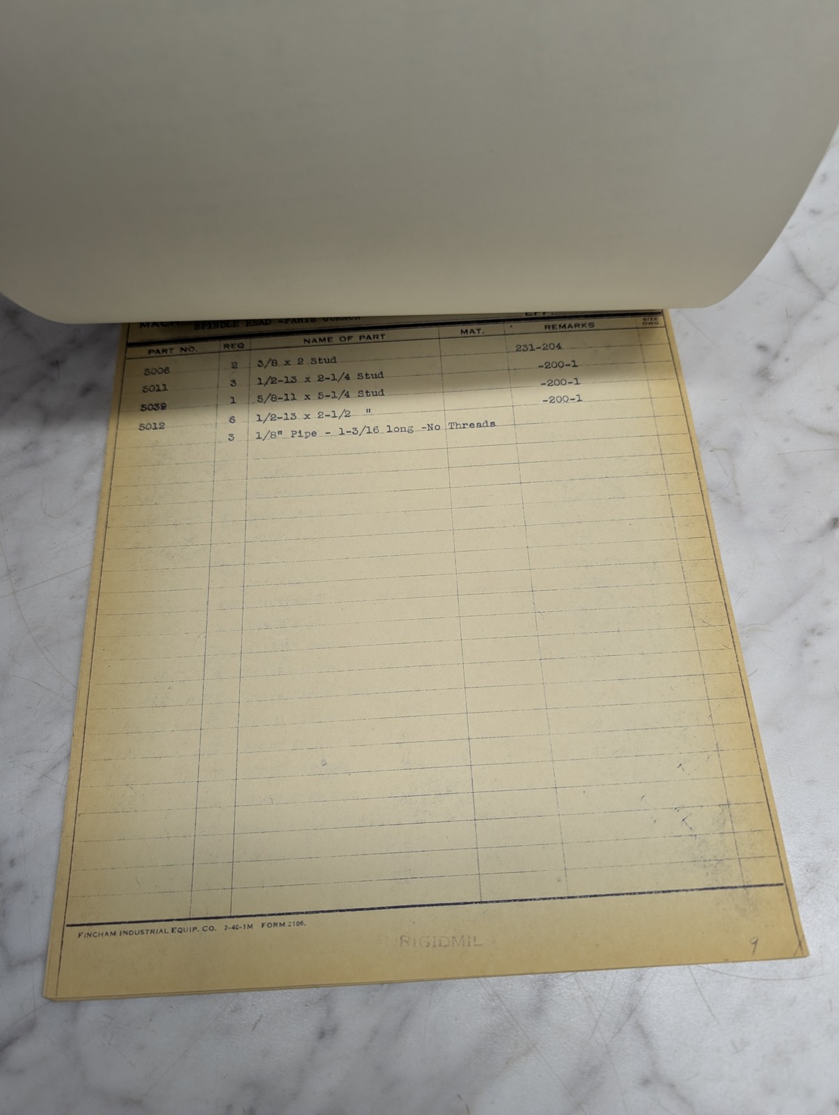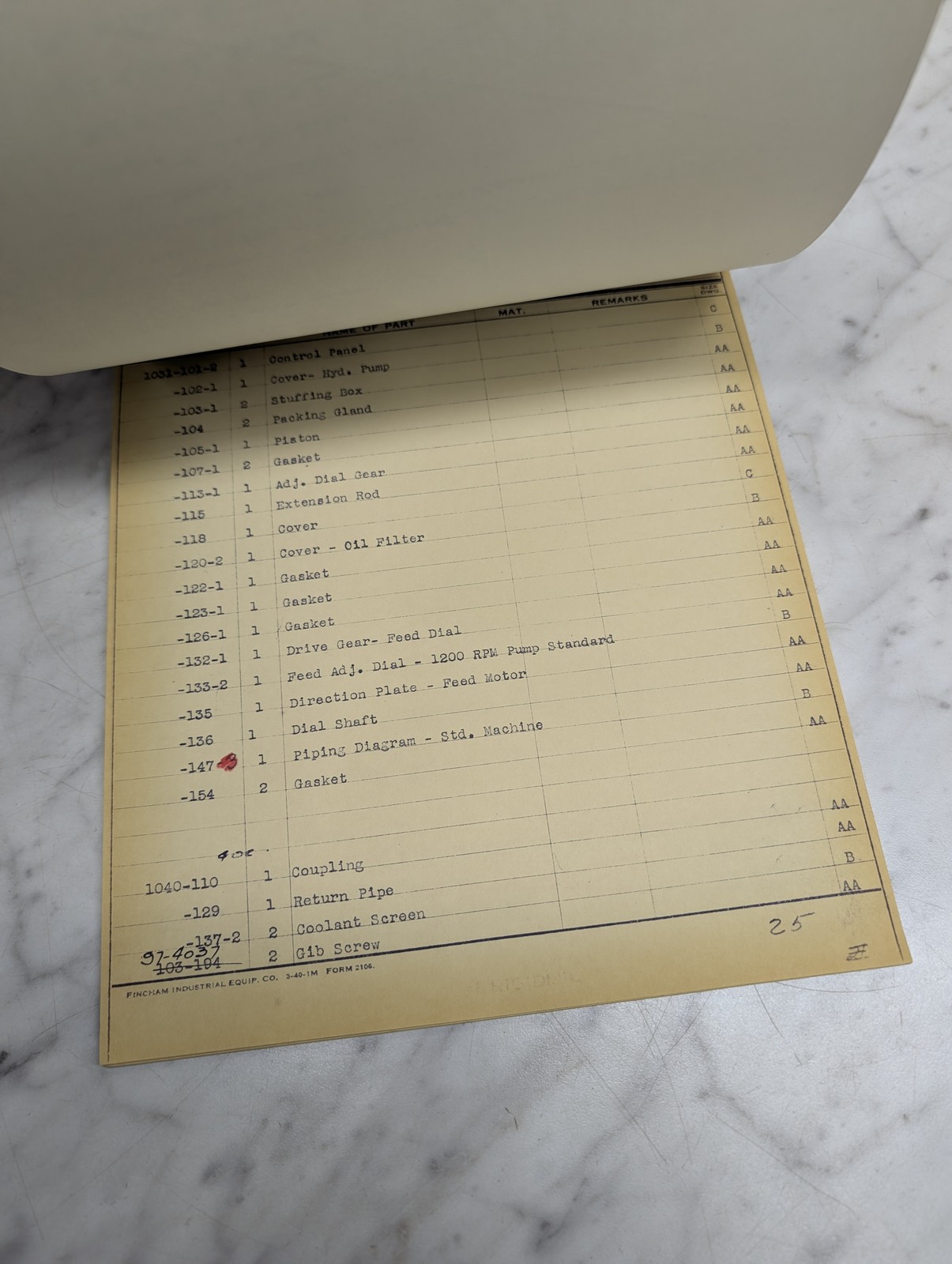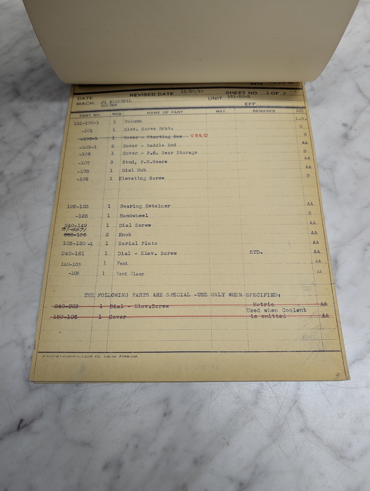 Sundstrand 1 Rigidmill Type A Spindle Head Machine Serial 31-1328 1961 Part List