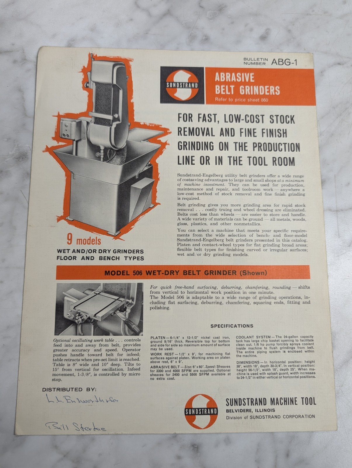 Sundstrand Abrasive Belt Grinders Abg-1 Sales Brochure Literature Information