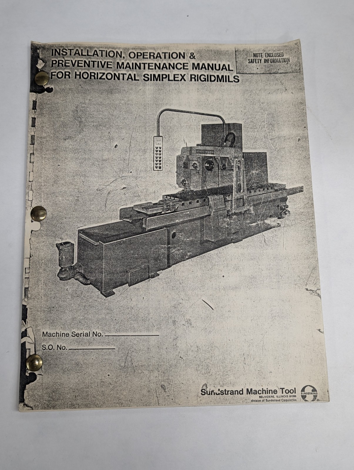 Sundstrand Machine Instrallation Operations Maintenance Manual Simplex Rigidmils