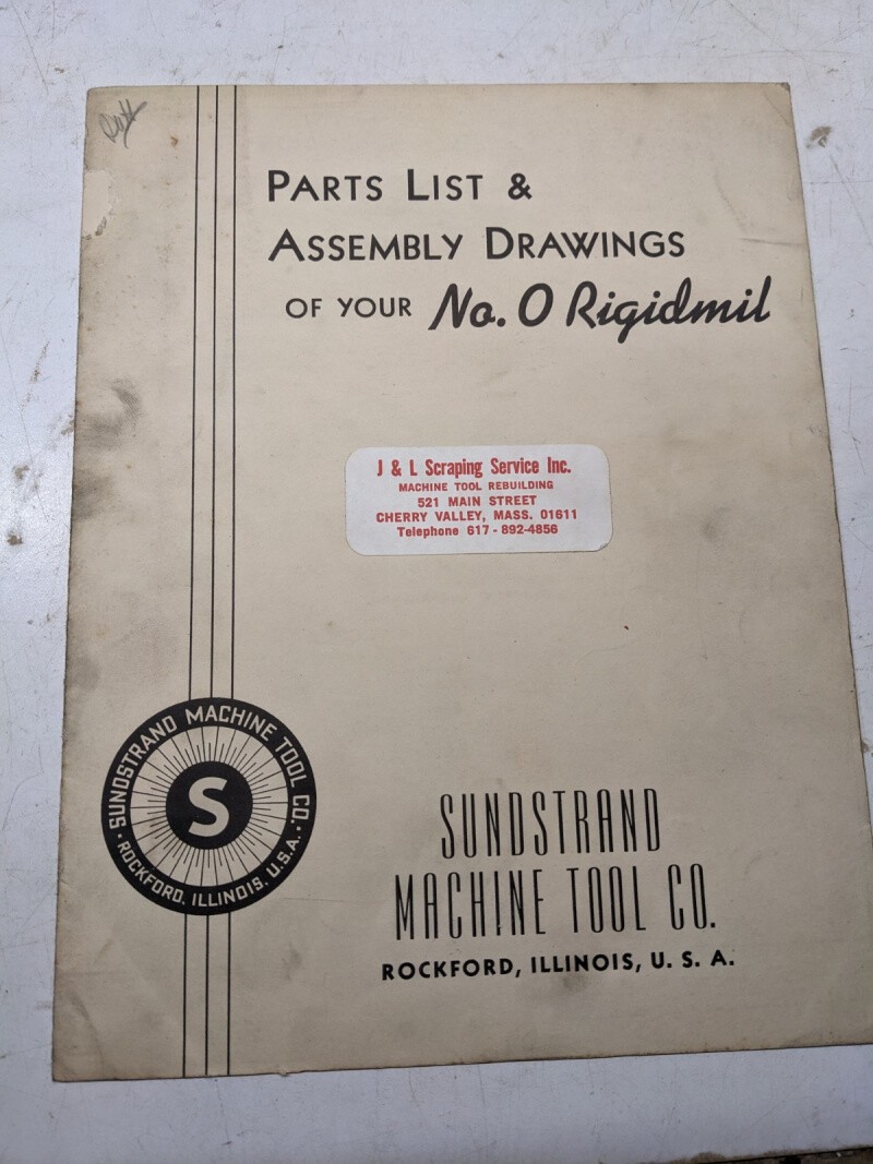 Sundstrand Machine Part List Manual Book Assembly Drawing #0 Rigidmil Tool 1945
