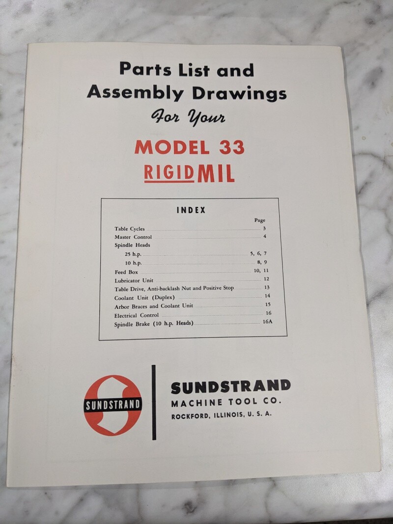 Sundstrand Machine Service Parts List Book Manual Catalog Model 33 Rigidmil