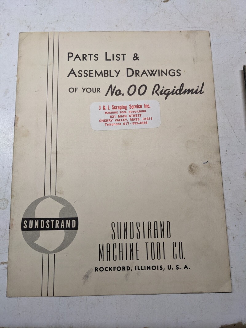 Sundstrand Machine Tool Part List Manual Book Assembly Drawing Rigidmil #00 1945