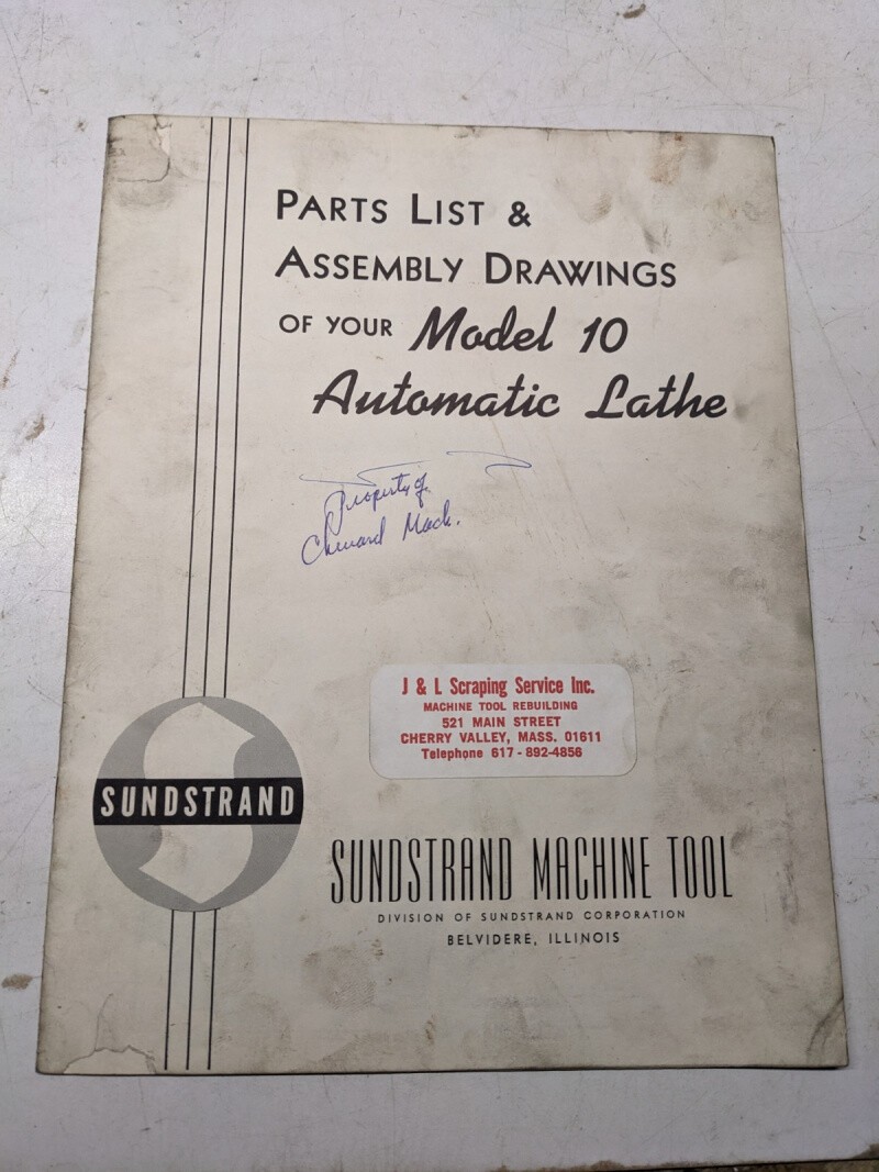 Sundstrand Machine Tool Parts List Manual Book Assembly Drawing Model 10 Lathe