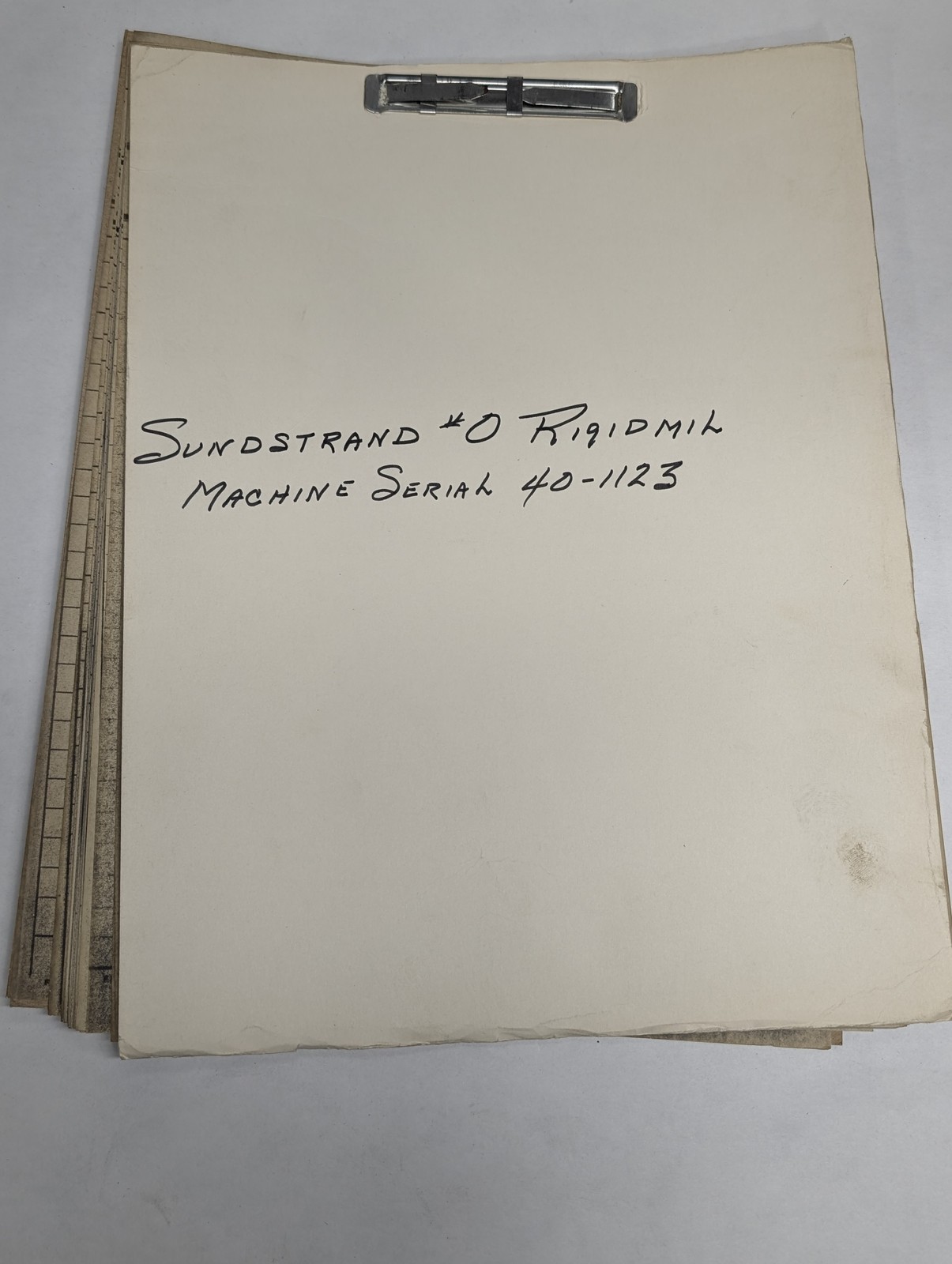 Sundstrand Machine Tools #0 Rigidmil Numerical Parts Listing