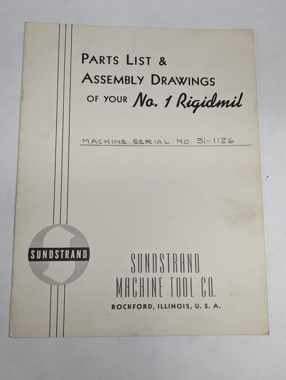 Sundstrand Machine Tools #1 Rigidmil Parts List Assembly Drawings Manual