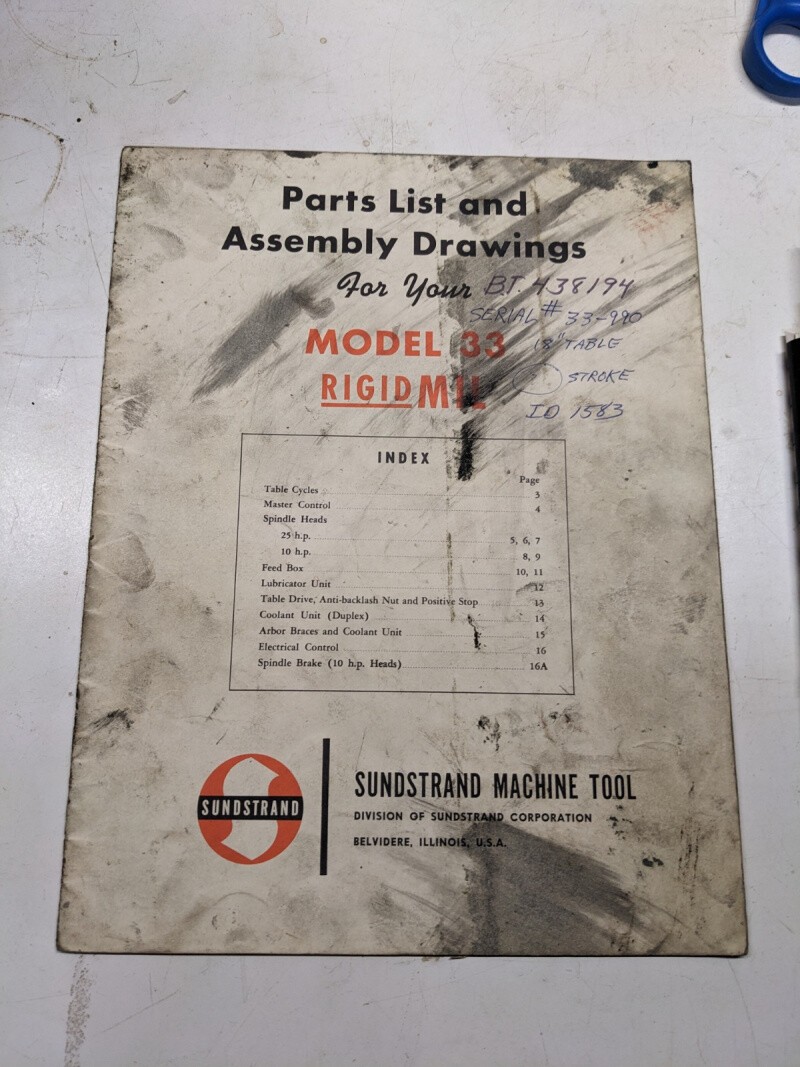 Sundstrand Parts List Book Manual Assembly Drawings No 33 Rigidmil Machine