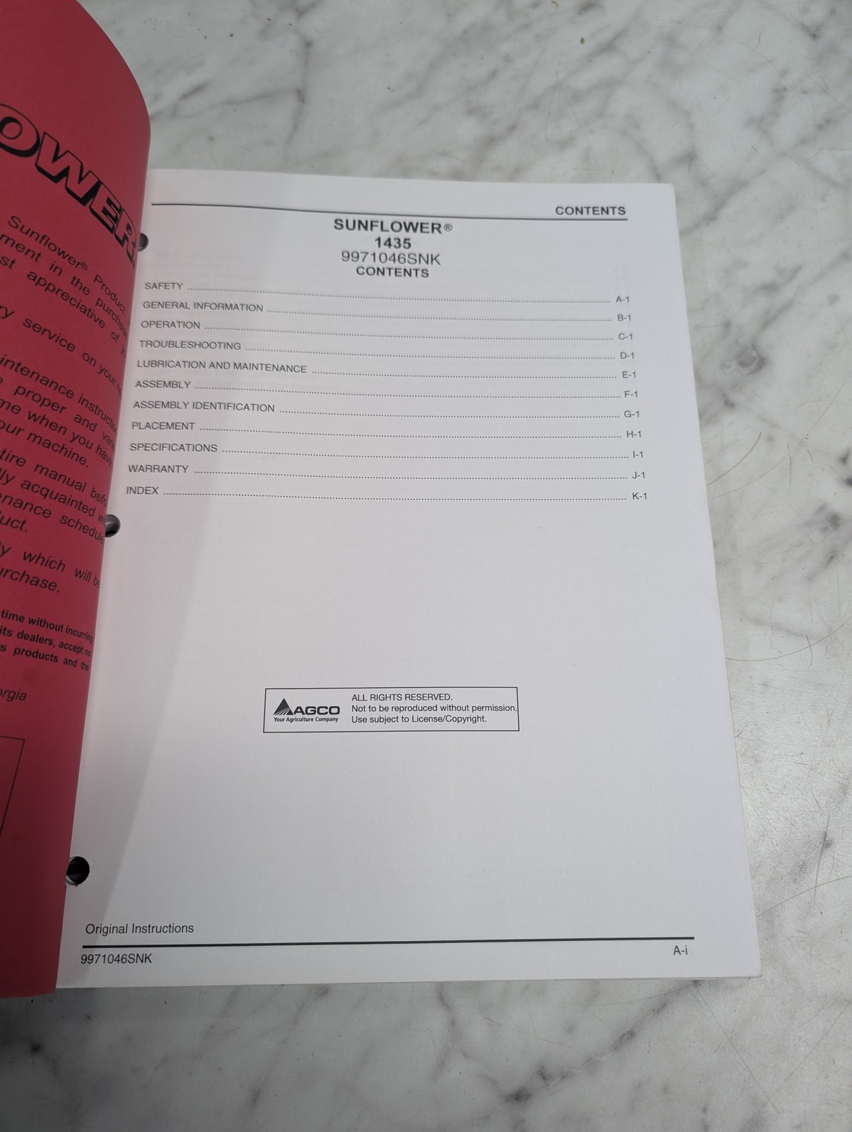 Sunflower 1435 Three Section Tandem Disc Tillage Operator Manual Owners