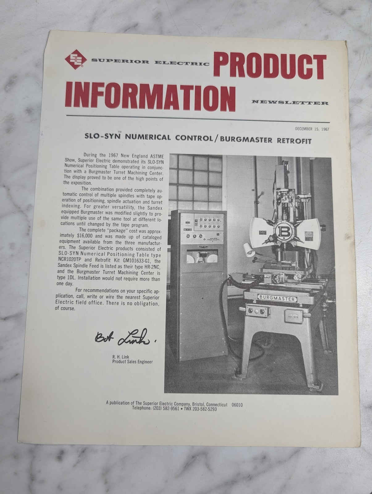 Superior Electric Product Information Slo-Syn Numerical Control Sales Brochure