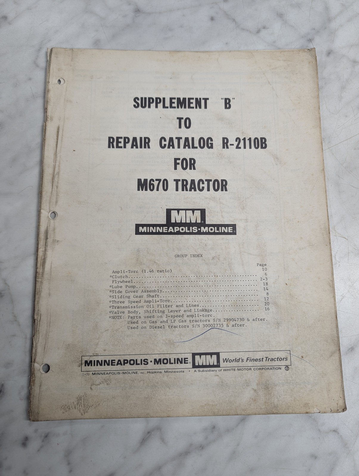Supplement “B” Repair Catalog R-2110B M670 Tractor Minneapolis Moline Manual