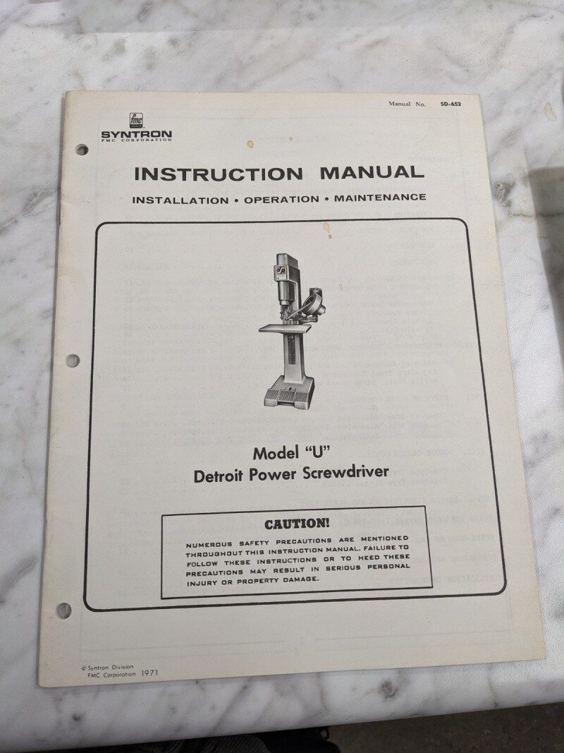 Syntron Instruction Service Manual Part List Model U Detroit Power Screwdriver