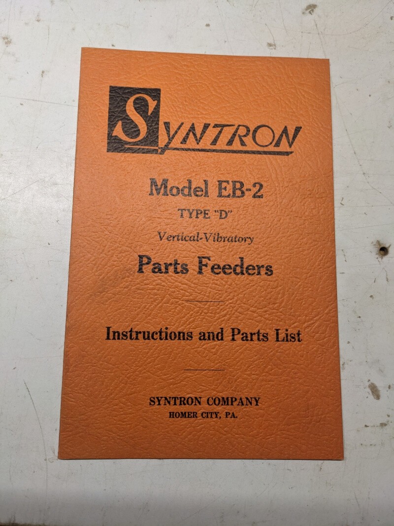 Syntron Vibratory Feeder Instruction Operator Part List Manual Model Eb-2 D 1962
