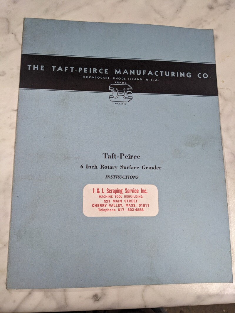 Taft Peirce Manufacturing 6” Rotary Surface Grinder Instruction Operator Manual