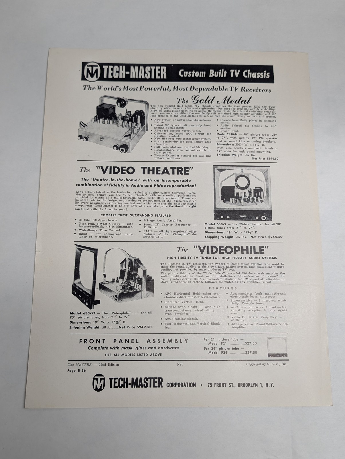 Tech-Master Custom Built Tv Chassis Television Tv Components Sales Literature