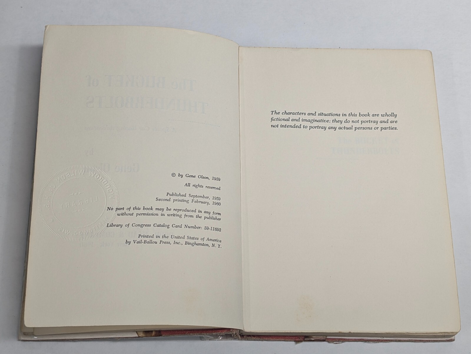 The Bucket Of Thunderbolts By Gene Olson – Teen Racing Novel W/ Dj 1960
