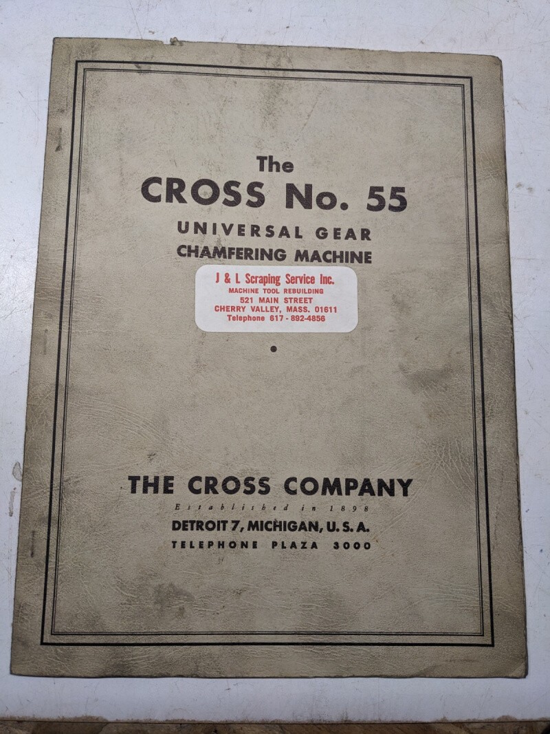 The Cross #55 Universal Gear Chamfering Machine Parts List Manual Diagram 1946