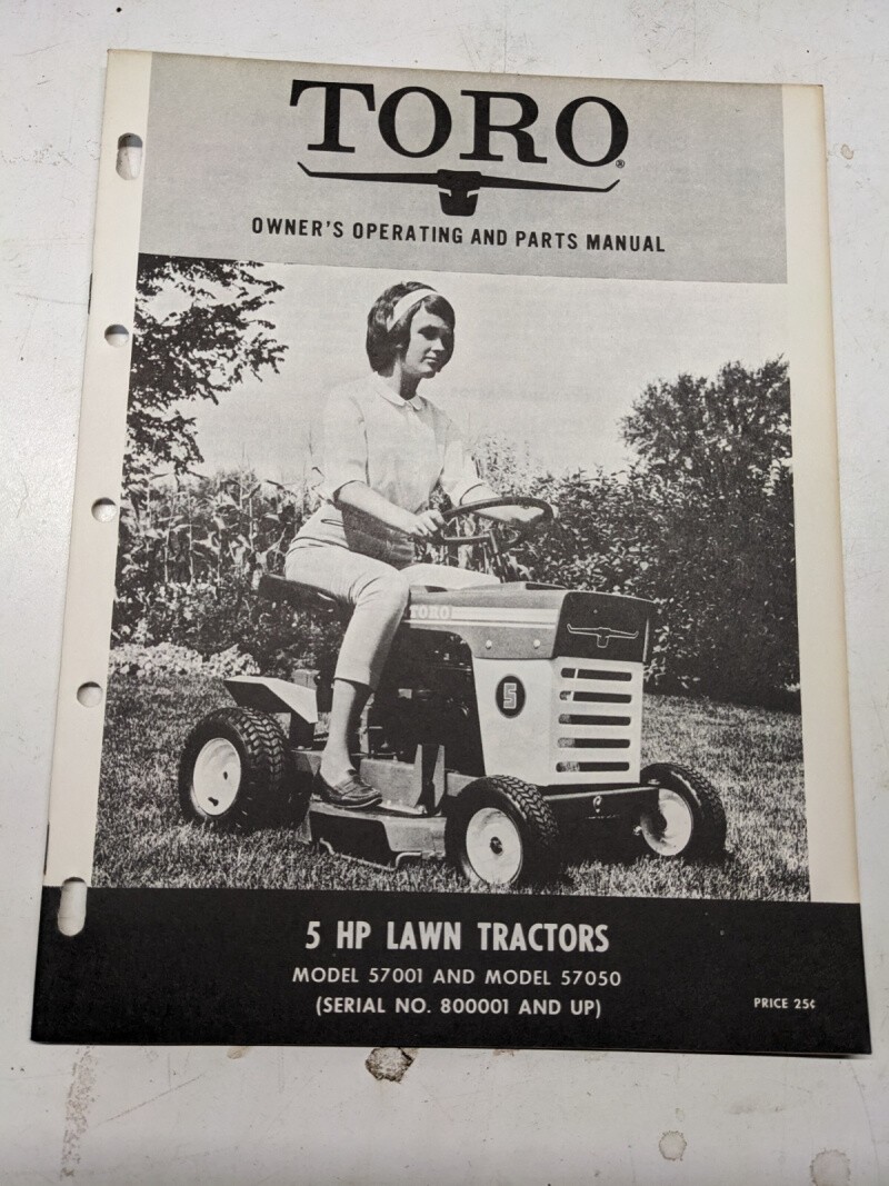 Toro 5Hp Lawn Tractors 57001 Owners Operating Parts Manual List Book Catalog