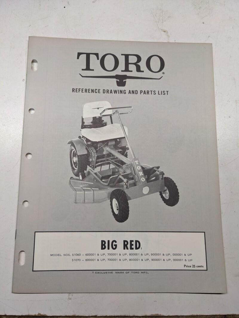 Toro Big Red Model 51060 51070 Reference Drawing Parts List Book Catalog Manual