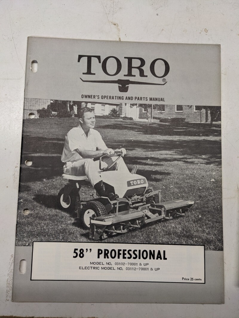 Toro Owners Operating Parts Manual List Book Catalog 58” Professional 03112