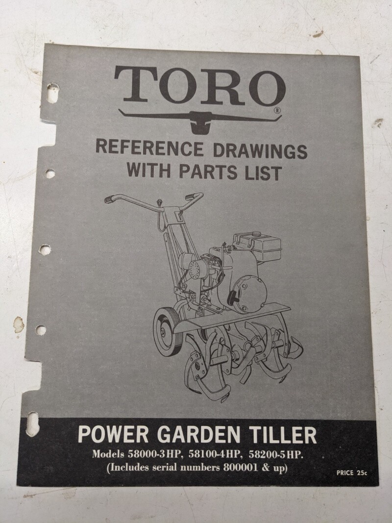 Toro Part Catalog List Book Manual Reference Drawing Tiller 58000 58100 58200 67