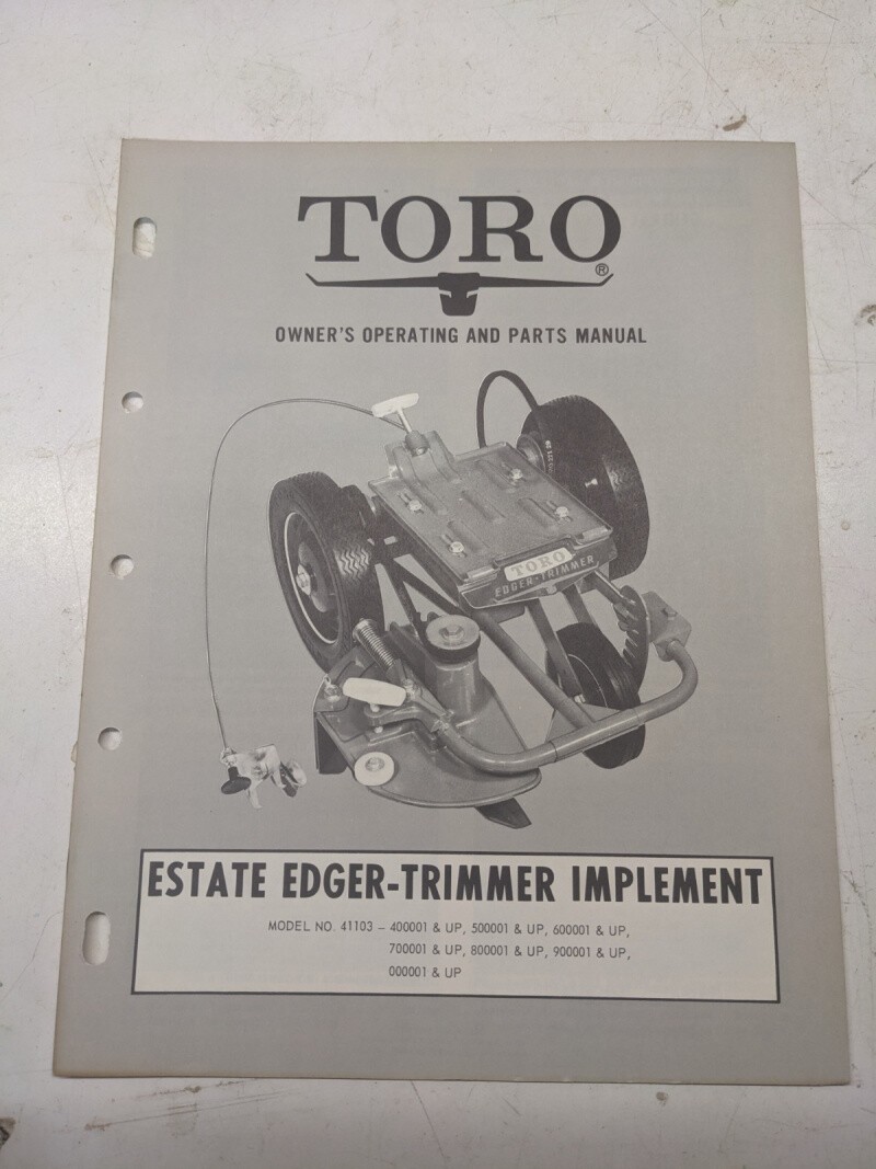 Toro Parts Book Manual Reference Drawing Estate Edger Trimmer Implement 41103