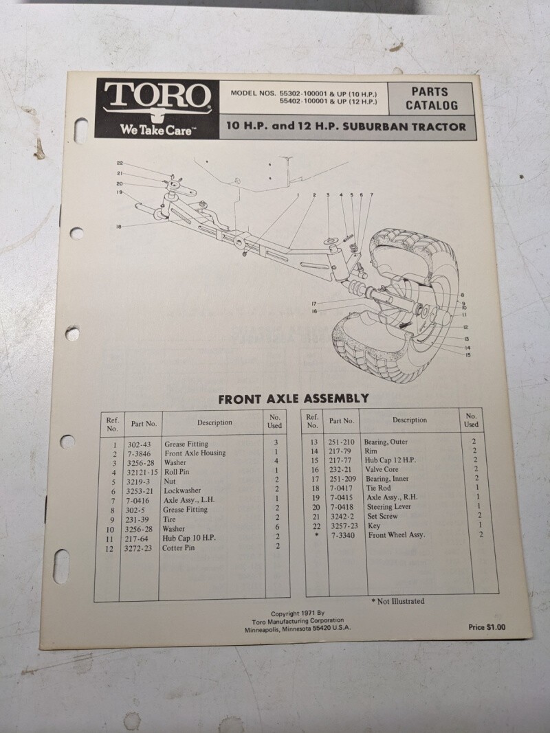 Toro Parts Catalog List Book Manual 10 12Hp Lawn Tractor 55302 55402 Suburban
